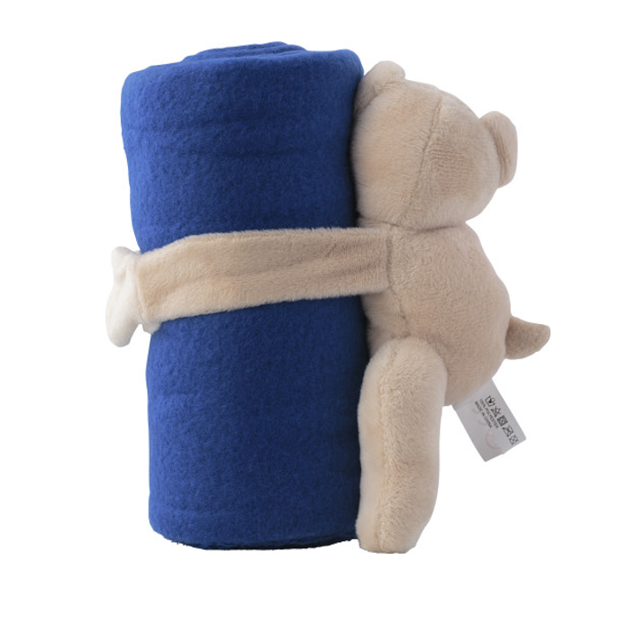 Plush toy bear with fleece (180 gsm) blanket (unfolded: approx. 180 x 20 cm). Hands held together with Velcro.