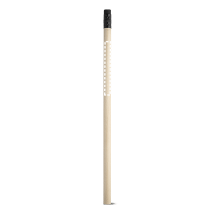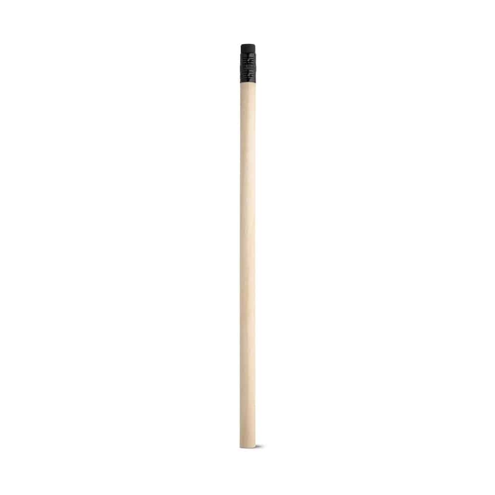 Natural wood pencil with black top and rubber. Not sharp. Degree of hardness: HB. ø7 x 190 mm