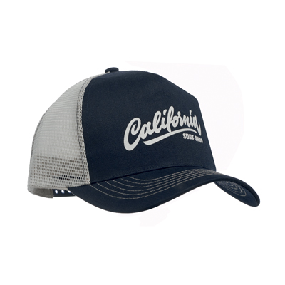 6 panel high profile trucker hat. Polycotton front with mesh back. Pre-curved visor, polyester sweatband and plastic closure.