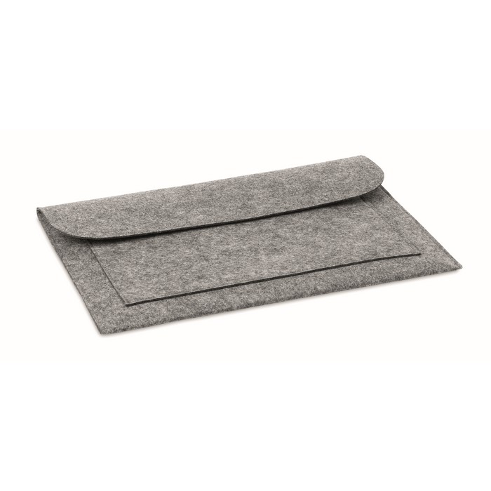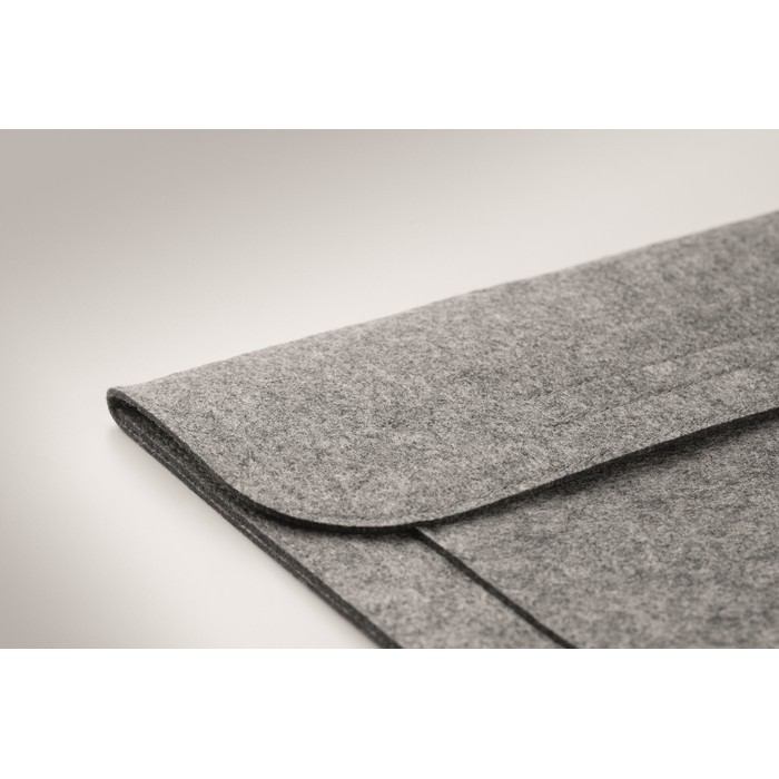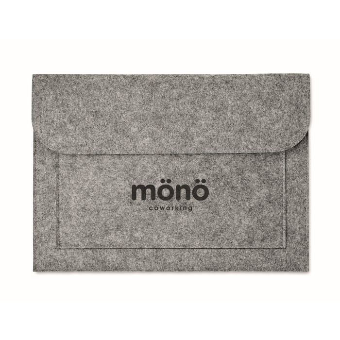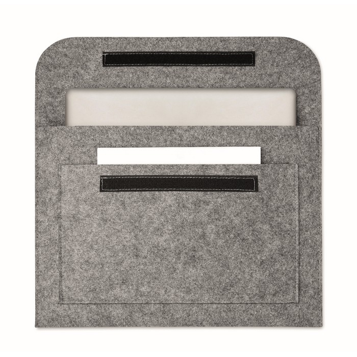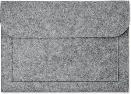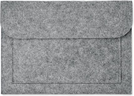 Documents bag or 15 inch laptop pouch in RPET felt, 2mm thick, with front pocket and hook and loop closing.