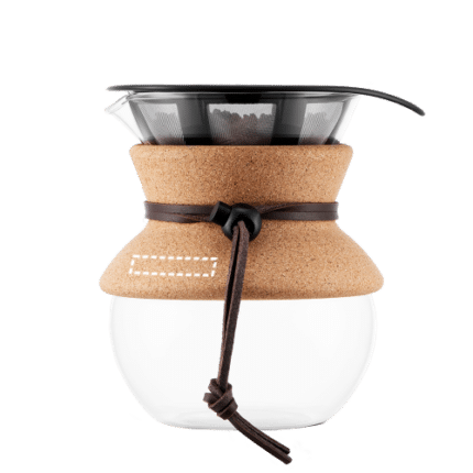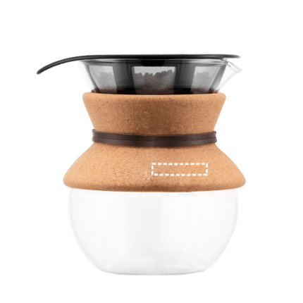 Innovative filter coffee maker with a high-quality borosilicate glass container. The glass is heat resistant and does not alter the natural flavour of the coffee. The carafe is equipped with a permanent stainless-steel filter for sustainable preparation and contains a silicone strip for comfortable and safe use. The Pour Over coffee maker is ideal for achieving a richer, fuller-bodied coffee in your everyday life. Dishwasher safe. It has a capacity of up to 500 mL. Made in Europe. Supplied in a gift box. 115 x 154 x 138 mm