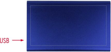 Power bank 4000 mAh in aluminium. Capacity for smartphone use, out put current DC5V/1A. Includes indicating light and USB cable with micro usb plug.