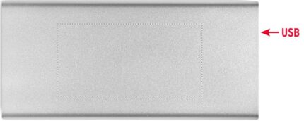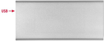 Power bank 10000 mAh in aluminium. Capacity for smartphone use, output current DC5V/1A and DC5V/2A . Includes indicating light and USB cable with micro usb plug. Supports quick charging technology (18W). In/Output: Type-C.