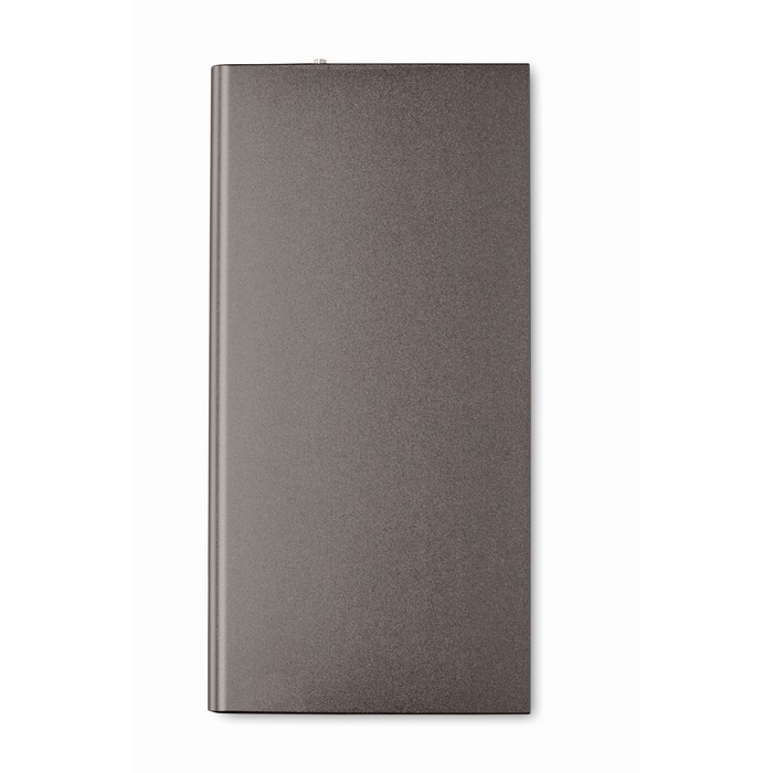 Power bank 8000 mAh in aluminium. Capacity for smartphone use, output current DC5V/1A and DC5V/2A . Includes indicating light and USB cable with micro usb plug.