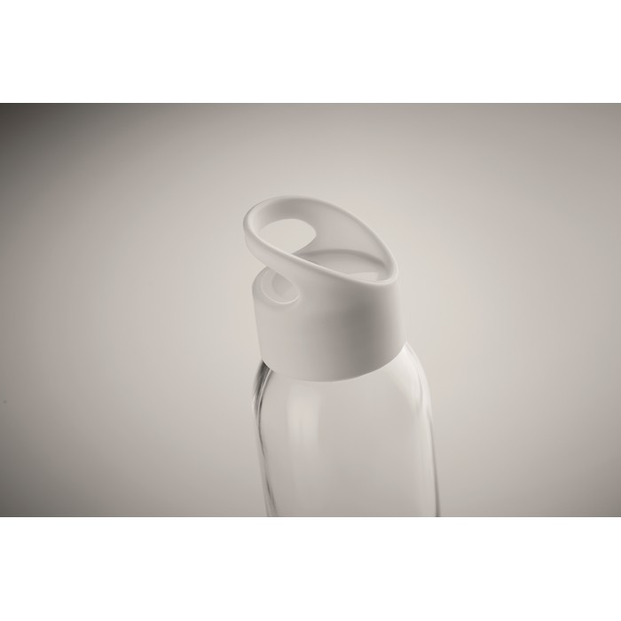 Glass bottle with PP lid with hanging carrying loop. Capacity 470 ml. Not suitable for carbonated drinks. Leak free.