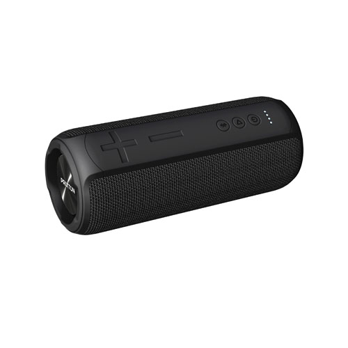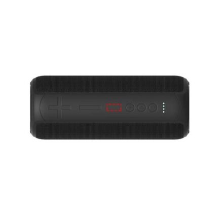 Bluetooth 4.2 IPX7 splash resistant 30 W speaker, with a microphone and hands-free function to answer phone calls. 2200 mAh battery that recharges fully in 3 hours, with a playback time of 10 hours. Dimensions 9,4 x 9 x 11 cm. Weight 380 g.