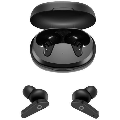 Earbuds with Active Noise Cancellation (ANC) to reduce unwanted background noise. Touch control, handsfree function, splash proof. Speaker power 3MW. Earbuds battery 3.7V- 40 mAh. Earbuds charging time 1.5 hours. Playing time 4 hours. Charging case battery: 3.7V- 300 mAh. Bluetooth® 5.0. Delivered in a gift box.