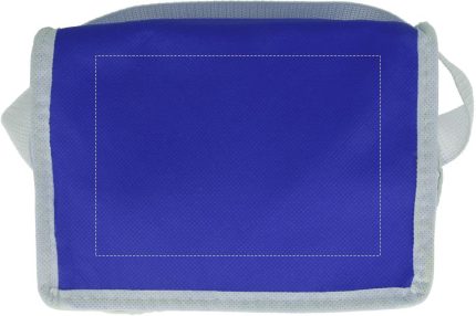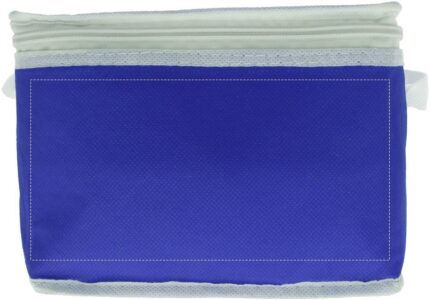 Cooler bag for 6 cans. Outside in nonwoven with white trimmings. 80 gr/m². Isolation material: foam laminated with aluminium foil. Capacity 3L.