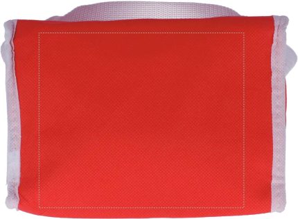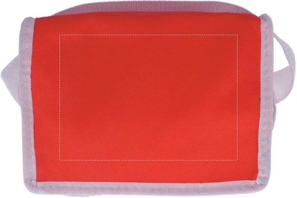Cooler bag for 6 cans. Outside in nonwoven with white trimmings. 80 gr/m². Isolation material: foam laminated with aluminium foil. Capacity 3L.