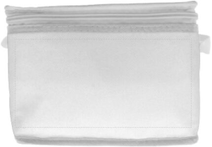 Cooler bag for 6 cans. Outside in nonwoven with white trimmings. 80 gr/m². Isolation material: foam laminated with aluminium foil. Capacity 3L.