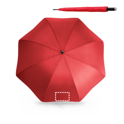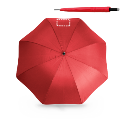 190T pongee umbrella, with fiberglass ribs, automatic opening and imitation leather handle with slot for doming. Supplied in a pouch with a handle. Umbrella: ø1100 x 825 mm | Pouch: ø90 x 680 mm Umbrella: ø1100 x 825 mm | Pouch: ø90 x 680 mm
