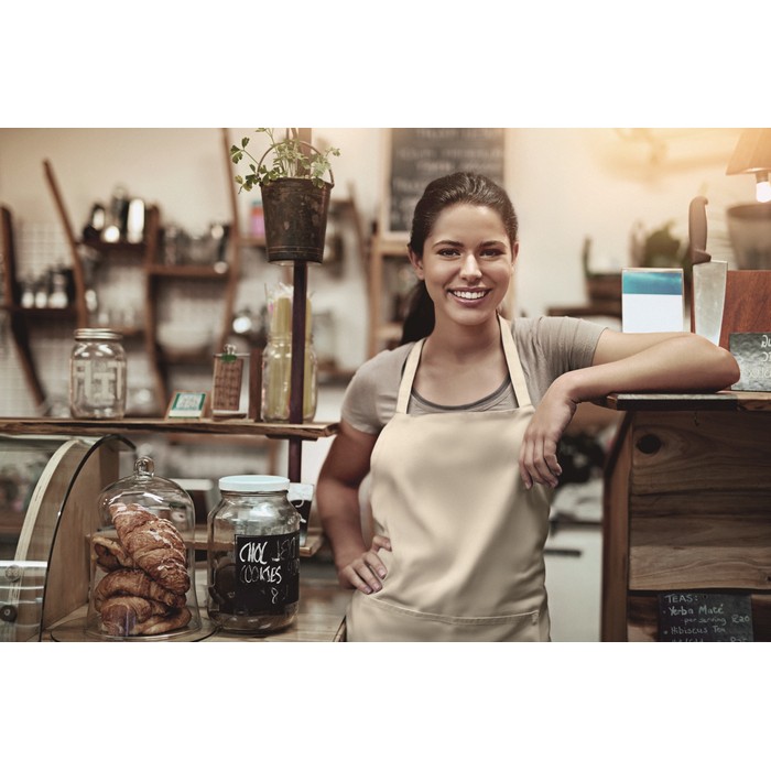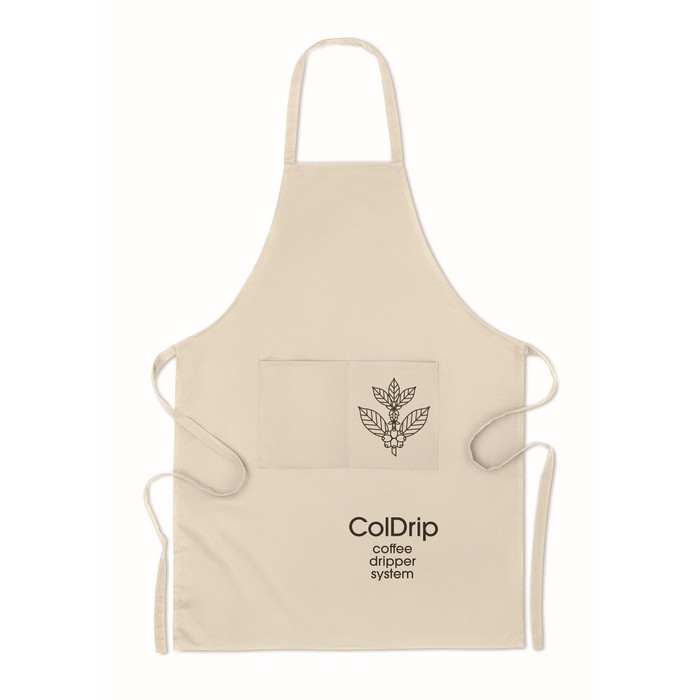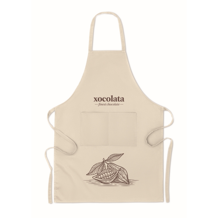 Kitchen apron with 2 front pockets in 200 gr/m² organic cotton.