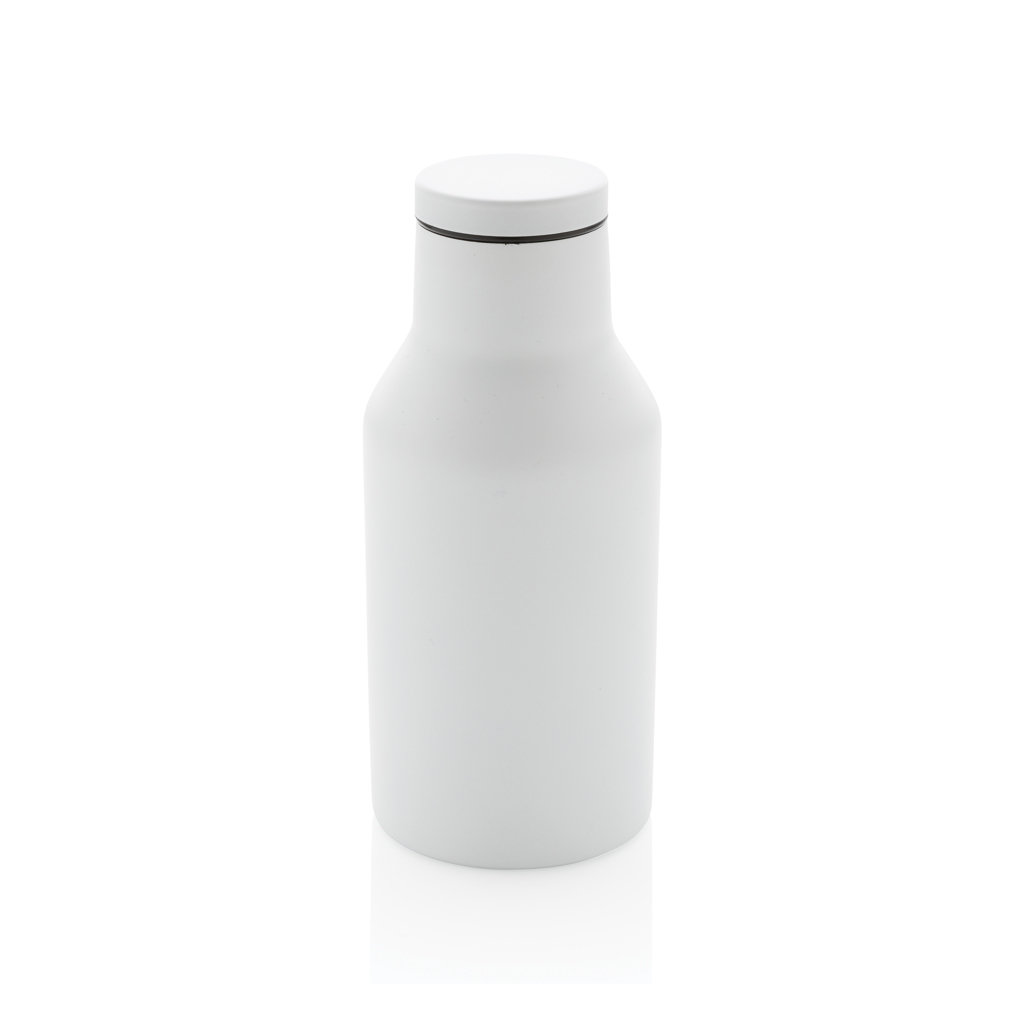 This RCS Recycled stainless steel compact bottle comes with a secure, screw-on lid that features a wide opening for easy cleaning and filling. This compact bottle is made from recycled stainless steel and features double-wall construction to keep your favourite beverages warm for up to 3 hours or cold for up to 6 hours. Made with RCS (Recycled Claim Standard) certified recycled materials. RCS certification ensures a completely certified supply chain of the recycled materials. Total recycled content: 89% based on total item weight. BPA free. Capacity 300ml. Including FSC®-certified kraft packaging.