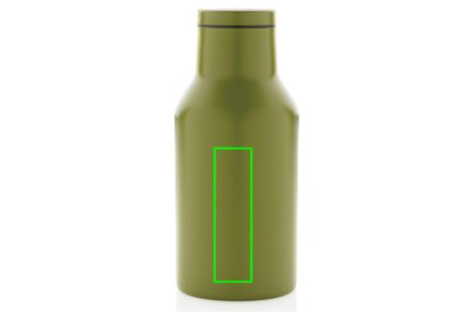 This RCS Recycled stainless steel compact bottle comes with a secure, screw-on lid that features a wide opening for easy cleaning and filling. This compact bottle is made from recycled stainless steel and features double-wall construction to keep your favourite beverages warm for up to 3 hours or cold for up to 6 hours. Made with RCS (Recycled Claim Standard) certified recycled materials. RCS certification ensures a completely certified supply chain of the recycled materials. Total recycled content: 89% based on total item weight. BPA free. Capacity 300ml. Including FSC®-certified kraft packaging.