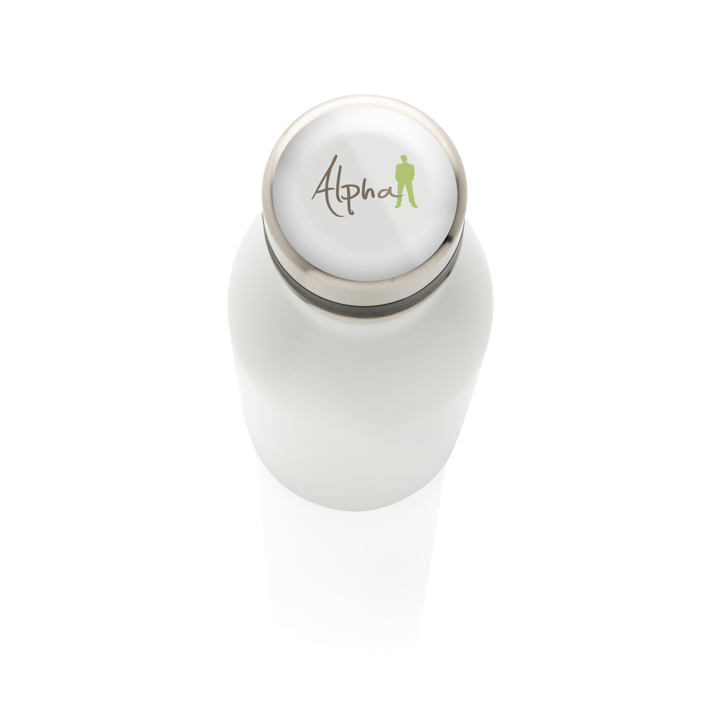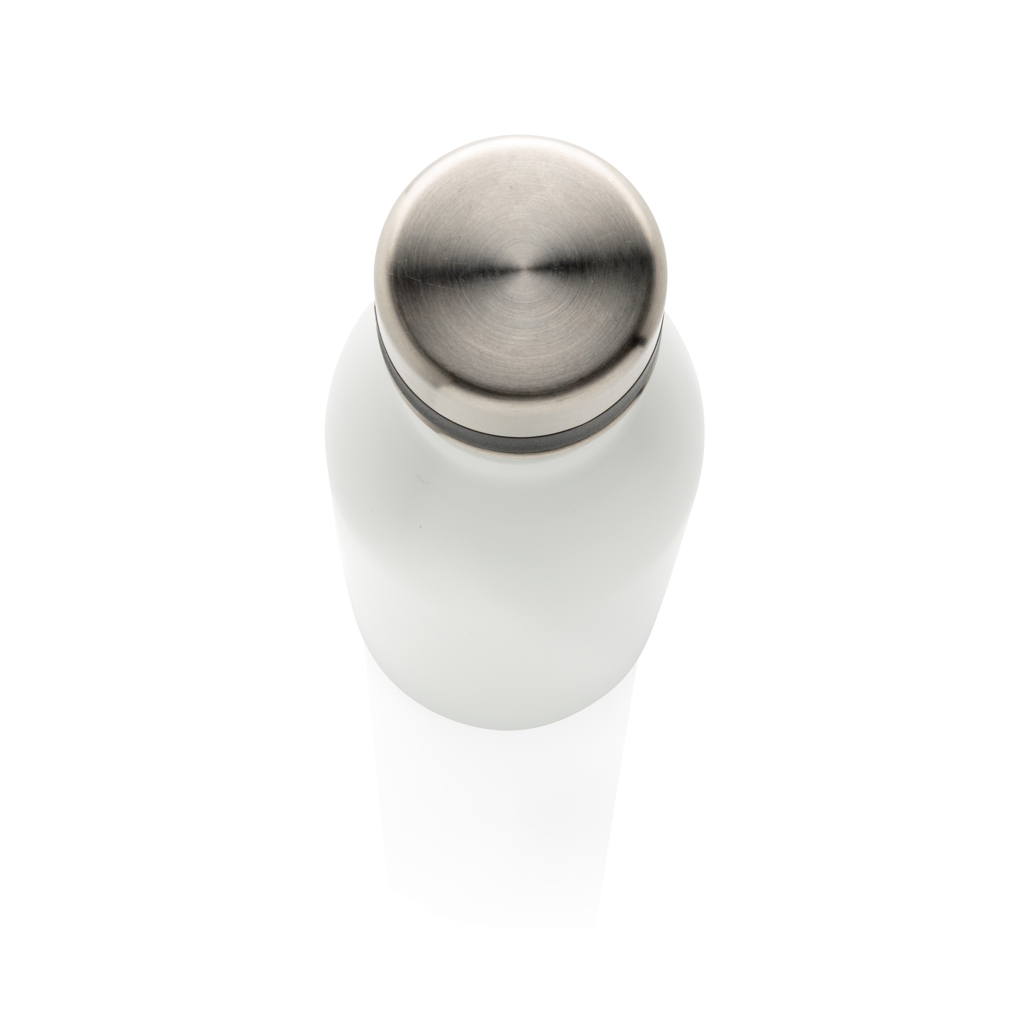 This perfect size and lightweight reusable bottle is made from 18/8 durable recycled stainless steel. Leakproof and perfect for everyday carrying and hydration. Recommended for cold water only. Made with RCS (Recycled Claim Standard) certified recycled materials. RCS certification ensures a completely certified supply chain of the recycled materials. Total recycled content: 80% based on total item weight. BPA free. Capacity 500ml. Including FSC®-certified kraft packaging.