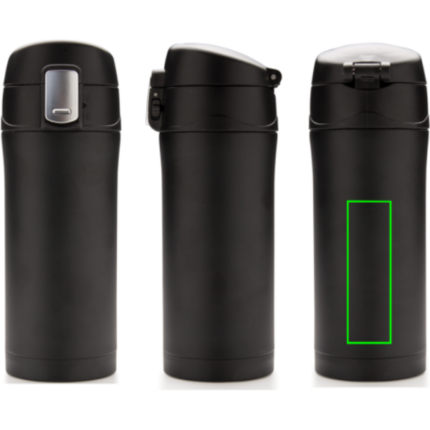 This great double wall stainless steel vacuum mug keeps your drink warm for up to 5 hours or cool for up to 15 hours. The lid is lockable and therefore avoids any risk of leaking or spilling. The lid is easy to keep clean for optimal hygiene and is dishwasher safe. The unique design of the mug allows you to drink conveniently and safely with one hand directly from the mug. The size of the mug is suitable to place in any car drink holder. Made with RCS (Recycled Claim Standard) certified recycled materials. RCS certification ensures a completely certified supply chain of the recycled materials. Total recycled content: 71% based on total item weight. BPA free. Capacity 300ml. Including FSC®-certified kraft packaging.