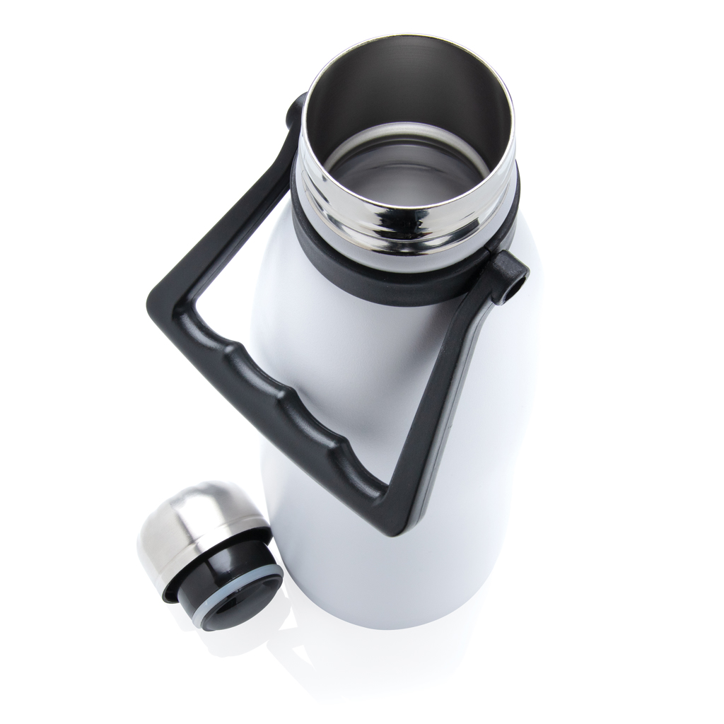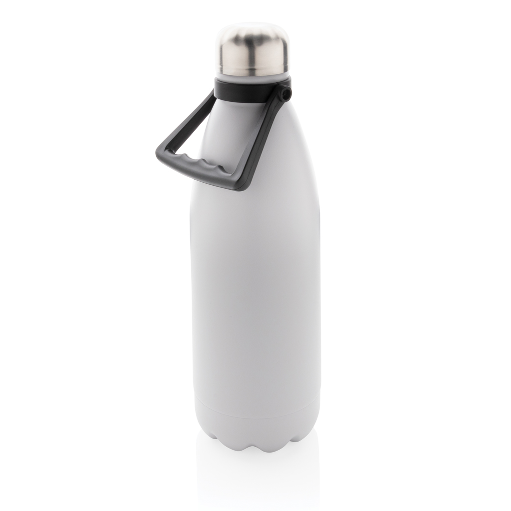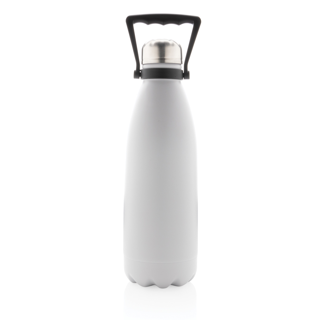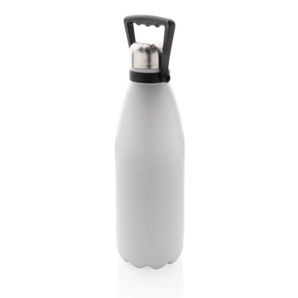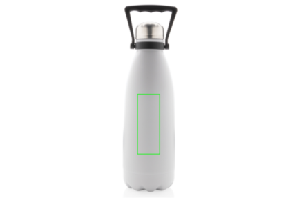 Take your favourite drinks everywhere in this large double wall stainless steel bottle. With its large capacity of 1.5 litres, you are assured to have plenty to drink and the bottle keeps your beverages hot for up to 5 hours or cold for up to 15 hours. The bottle has a beautiful powder coated finish and a convenient handle for easy carrying. Made with RCS (Recycled Claim Standard) certified recycled materials. RCS certification ensures a completely certified supply chain of the recycled materials. Total recycled content: 88% based on total item weight. Capacity 1500ml. BPA free. Including FSC®-certified kraft packaging.