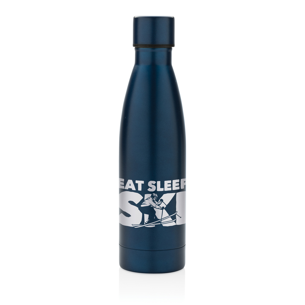 This RCS Recycled stainless steel vacuum bottle is designed for long-lasting enjoyment of your drinks! The double-wall recycled stainless steel vacuum construction keeps beverages chilled for up to15 hours or warm for up to 5 hours. This bottle fits most standard car cup holders so you can bring it with you anywhere. Made with RCS (Recycled Claim Standard) certified recycled materials. RCS certification ensures a completely certified supply chain of the recycled materials. Total recycled content: 85% based on total item weight. BPA free. Capacity 500ml. Including FSC®-certified kraft packaging.