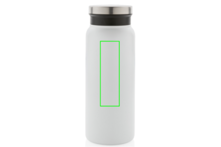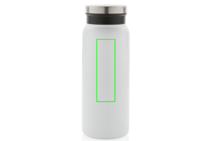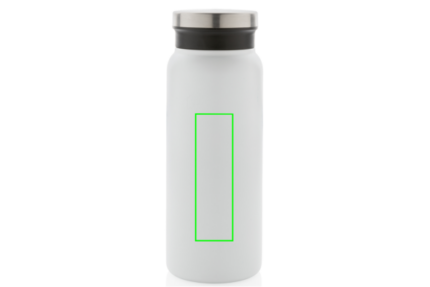 This RCS Recycled stainless steel vacuum bottle comes with a secure screw-on lid that features a wide opening for easy cleaning and filling. The additional PP insert ensures that the bottle is leakproof. This bottle is made from recycled stainless steel and features a double-wall construction to keep your favourite beverages warm for up to 5 hours or cold for up to 15 hours. Made with RCS (Recycled Claim Standard) certified recycled materials. RCS certification ensures a completely certified supply chain of the recycled materials. Total recycled content: 77% based on total item weight. BPA free. Capacity 600ml. Including FSC®-certified kraft gift box.