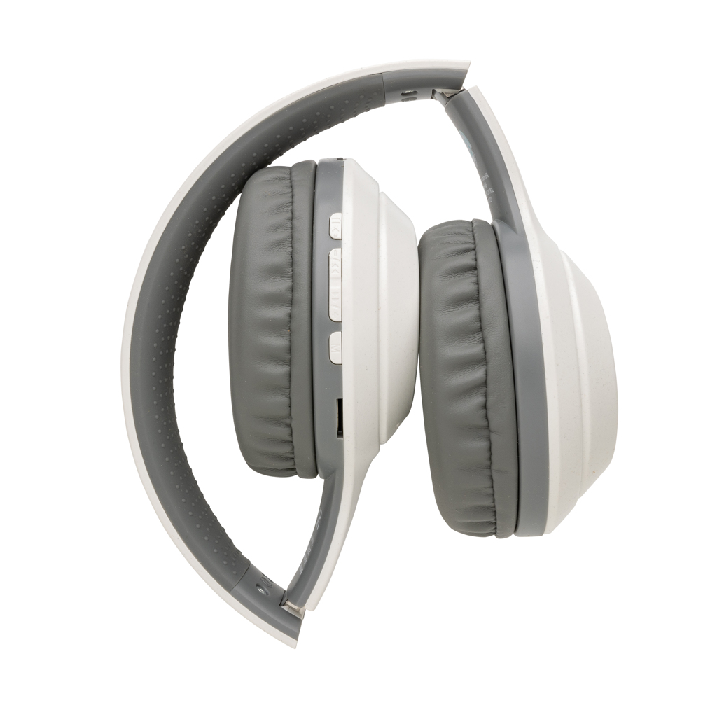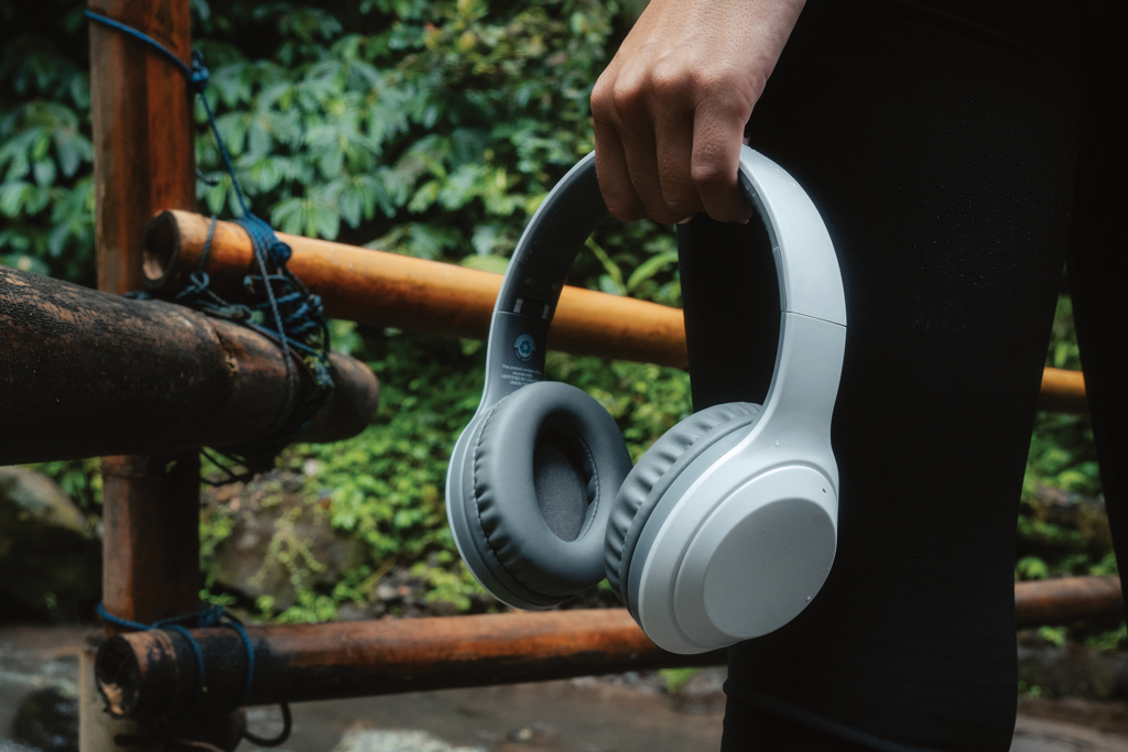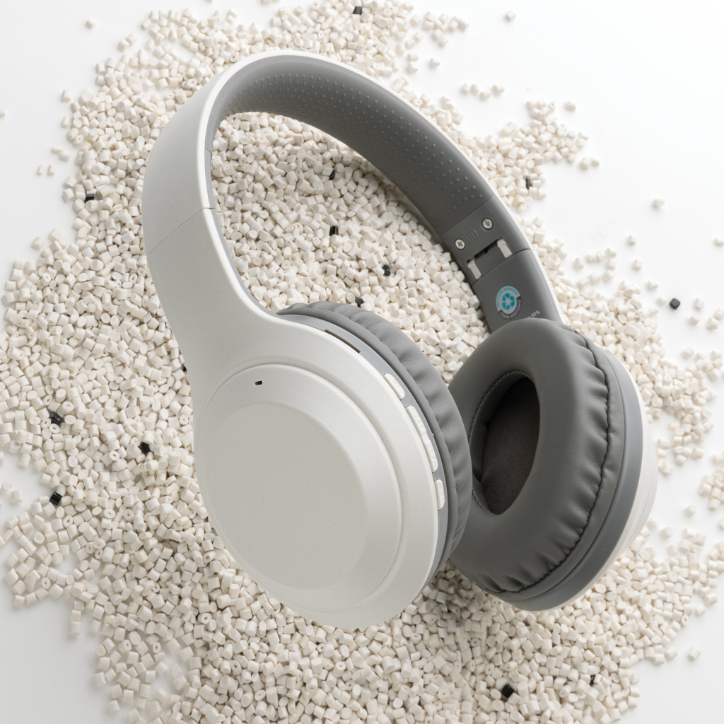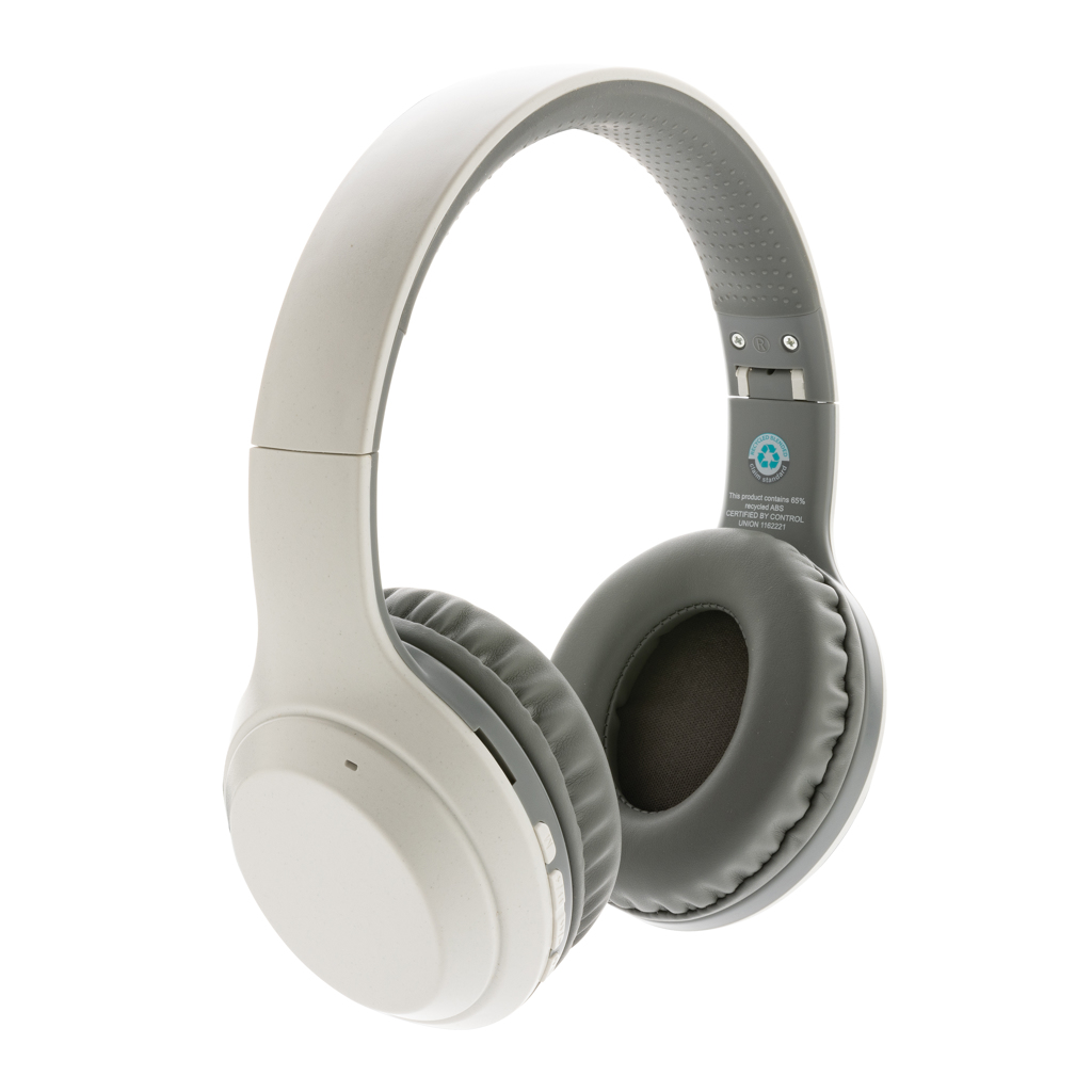 Foldable wireless headphone where the case is made out of RCS certified recycled ABS plastic. RCS (Recycled Claim Standard) is a standard to verify the recycled content of a product throughout the whole supply chain. Total recycled content: 65% based on total item weight. The wireless headphone uses BT 5.0 for super smooth connection and long lasting play-time. The over ear design of the earbuds allows a perfect sound experience. The built-in 200 mAh lithum battery allows a play time up to 6 hours and can be fully re-charged in 1.5 hours. Operating distance up to 10 metres. With mic and pick up function. Item and accessories are PVC free. Including PVC free recycled TPE material charging cable.
