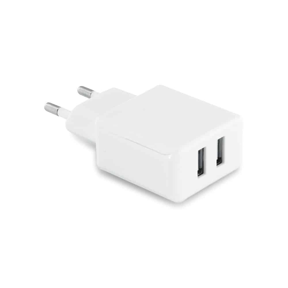 ABS USB adapter with 2 5V/1-2’1A output. 62 x 42 x 23 mm