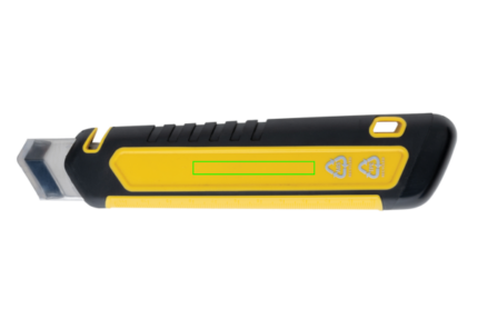 Refillable RCS certified recycled plastic heavy duty snap-off knife made with RCS (Recycled Claim Standard) certified recycled ABS, TPE and stainless steel blade. Total recycled content: 41% based on total item weight. RCS certification ensures a completely certified supply chain of the recycled materials. This versatile knife features a snap-off blade design, allowing you to easily replace the SK4 blade when it becomes dull. Whether you need to cut through cardboard, plastic, or even thin sheets of metal, the snap-off knife is up to the task. The sharp, durable blade ensures that you’ll get clean, precise cuts every time. The knife is also incredibly easy to use. The comfortable handle provides a secure grip, allowing you to maintain complete control as you cut. Plus, the lightweight design makes it easy to carry with you wherever you go. Packed in FSC® mix kraft package. The item comes with 1 blade inside the item and two extra blades.