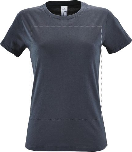 SOL’S REGENT Women’s T-shirt in single jersey with modern fitted cut. Taped neck seam, ribbed collar, side seam. Good results when ironed. Fabric details: 150g/m² single jersey, 100% semi-combed ringspun cotton. OEKO-TEX®. Only sold with print