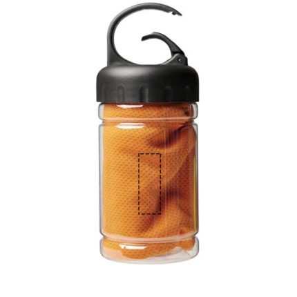 Quick absorbing, quick drying, and washable cooling towel made of strong and durable polyester for keeping cool during work-out or any outdoor activity. Comes in a PET container with a carry handle with a built-in carabiner for easy carrying. Available in 5 fresh colours. Large decoration logo area on the container, decoration also possible on the cooling towel itself. Size: 30 x 80 cm.