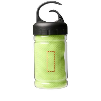 Quick absorbing, quick drying, and washable cooling towel made of strong and durable polyester for keeping cool during work-out or any outdoor activity. Comes in a PET container with a carry handle with a built-in carabiner for easy carrying. Available in 5 fresh colours. Large decoration logo area on the container, decoration also possible on the cooling towel itself. Size: 30 x 80 cm.