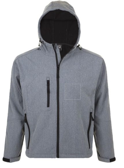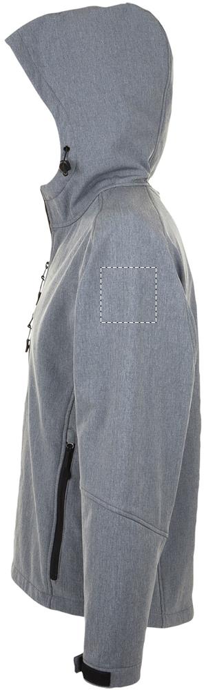 SOL’S REPLAY men softshell jacket 340g. 2 zipped side pockets and 1 zipped chest pocket. Adjustable waist drawstring. Adjustable cuffs with self-gripping fastener. Hood with drawstring. Fabric details: 94% polyester, 6% elastane. Fleece lining : 100% polyester. 3 layers. 8000 mm waterproof and breathable membrane. OEKO-TEX®. Only Sold with Print.