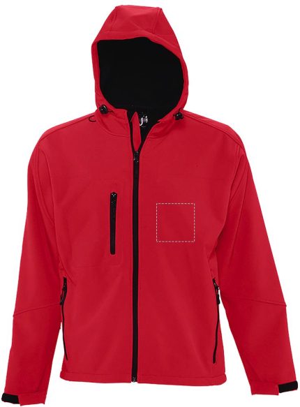 SOL’S REPLAY men softshell jacket 340g. 2 zipped side pockets and 1 zipped chest pocket. Adjustable waist drawstring. Adjustable cuffs with self-gripping fastener. Hood with drawstring. Fabric details: 94% polyester, 6% elastane. Fleece lining : 100% polyester. 3 layers. 8000 mm waterproof and breathable membrane. OEKO-TEX®. Only Sold with Print.