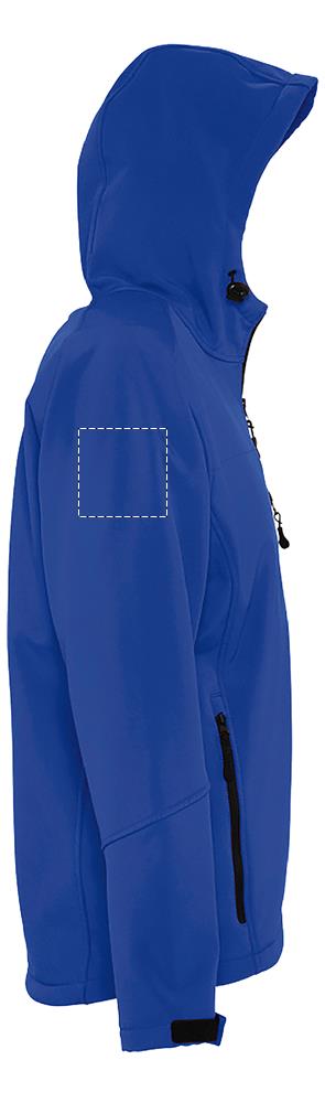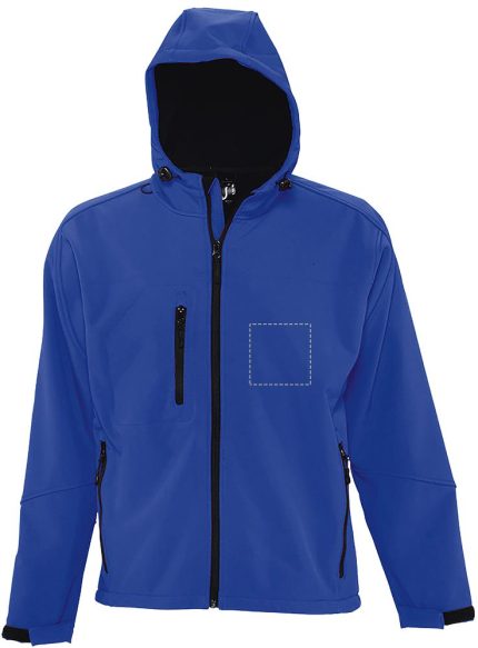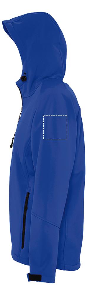SOL’S REPLAY men softshell jacket 340g. 2 zipped side pockets and 1 zipped chest pocket. Adjustable waist drawstring. Adjustable cuffs with self-gripping fastener. Hood with drawstring. Fabric details: 94% polyester, 6% elastane. Fleece lining : 100% polyester. 3 layers. 8000 mm waterproof and breathable membrane. OEKO-TEX®. Only Sold with Print.