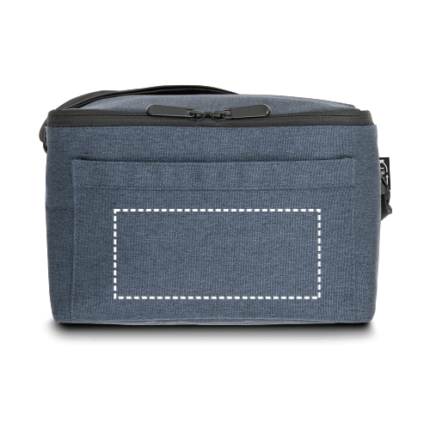 600D PET (100% rPET) cooler with PEVA interior. Adjustable webbing shoulder strap, front pocket and double way zipper. Capacity up to 7 L. 240 x 170 x 170 mm