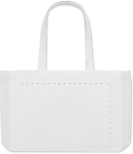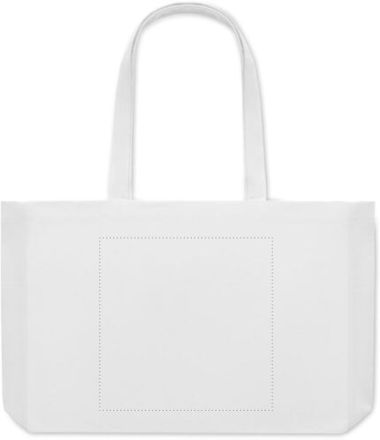 Recycled canvas shopping bag or beach bag, 50% cotton and 50% recycled cotton with long handles and gusset. 280 gr/m².