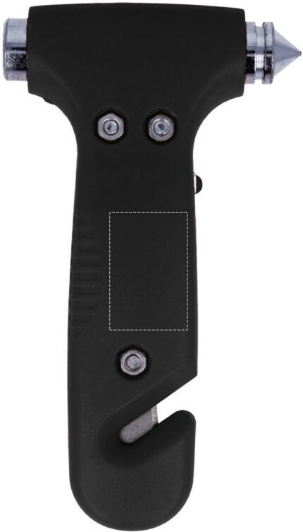 3 in 1 emergency hammer with belt cutter and LED light made of ABS. 3 AG3 batteries included.