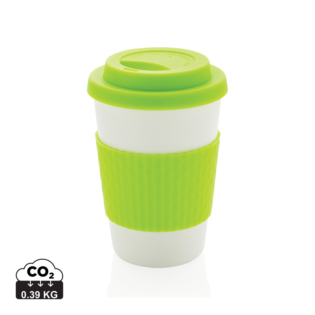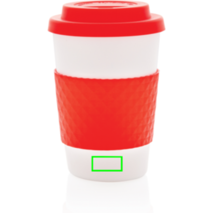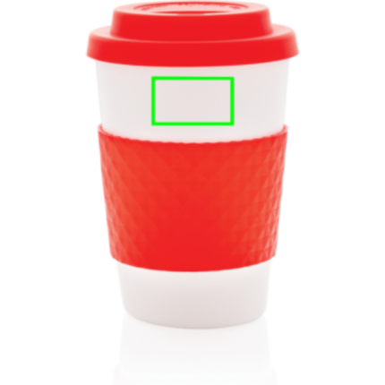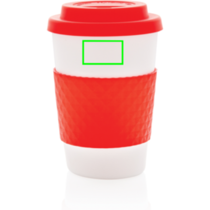 Stop single use! Bring your own cup and join the reuse revolution so you can contribute to a disposable free world. These lightweight and durable cups are perfectly suited to take your coffee on the go. These cups are reusable and made of 100% recyclable friendly PP material. 100 degree Celsius food safe approved. With silicone lid and sleeve. Dishwasher and microwave safe. Fits conveniently under most coffee machines. Content: 270ml.