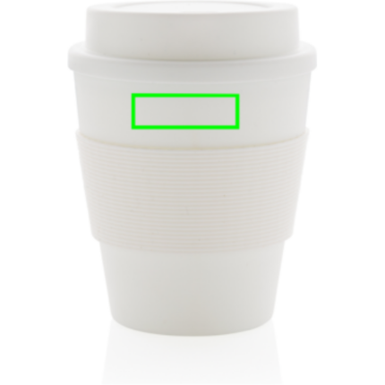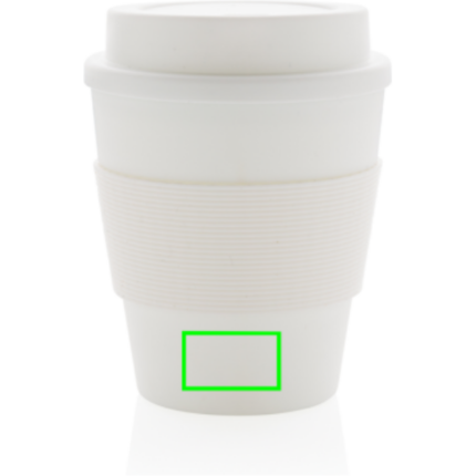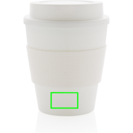 Stop single use! Bring your own cup and join the reuse revolution so you can contribute to a disposable free world. These lightweight and durable cups are perfectly suited to take your coffee on the go. These cups are reusable and made of 100% recyclable friendly PP material. The cups have a screw lid and a silicone sleeve. 100 degree Celsius food safe approved. Dishwasher and microwave safe. Content: 350ml.