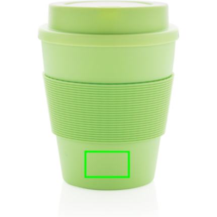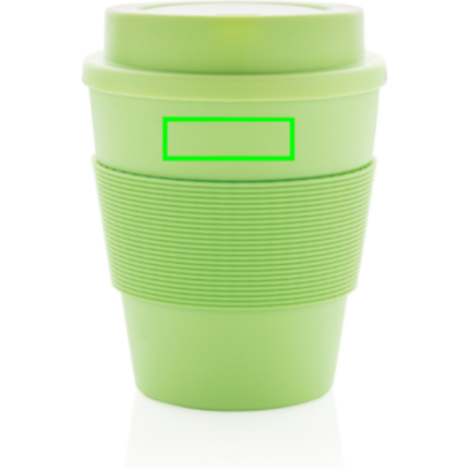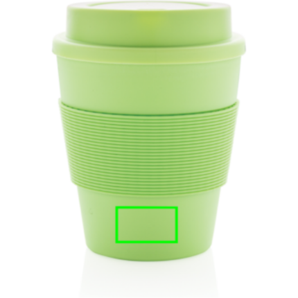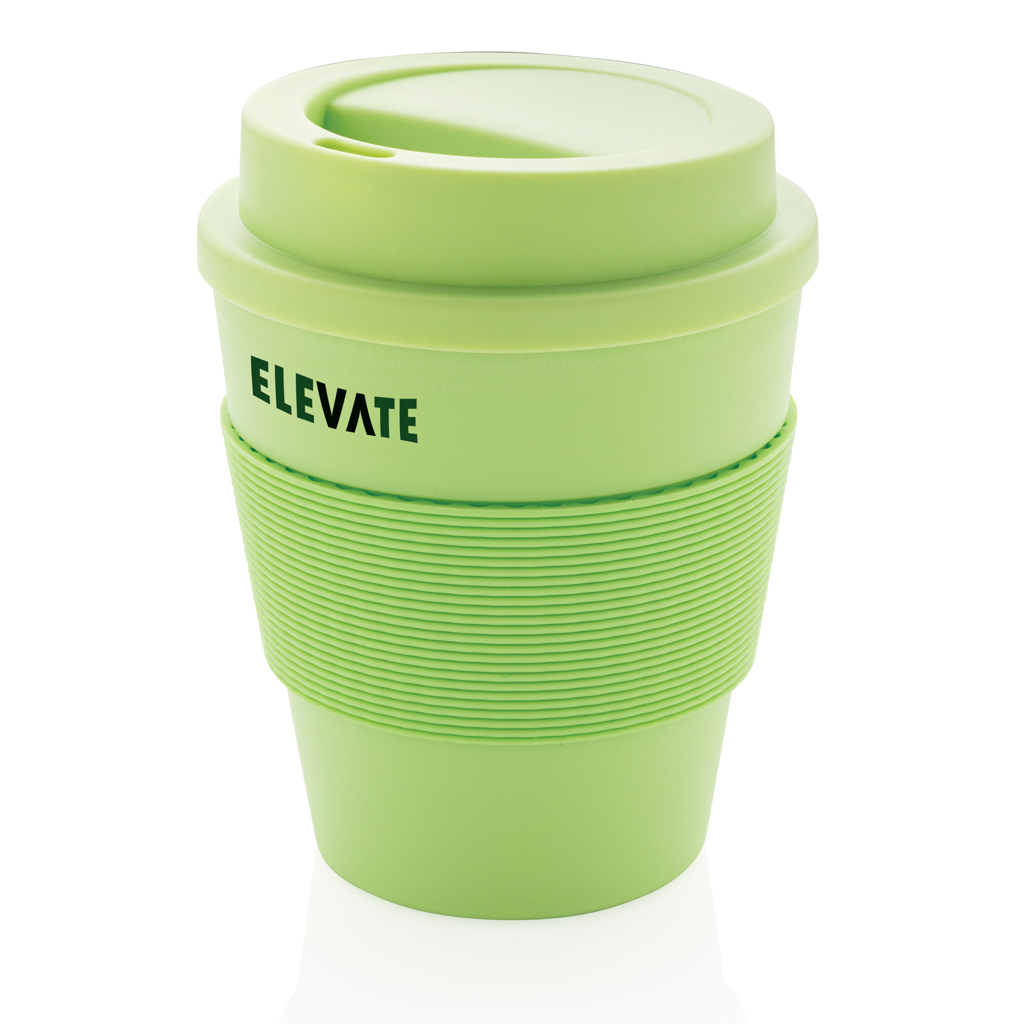 Stop single use! Bring your own cup and join the reuse revolution so you can contribute to a disposable free world. These lightweight and durable cups are perfectly suited to take your coffee on the go. These cups are reusable and made of 100% recyclable friendly PP material. The cups have a screw lid and a silicone sleeve. 100 degree Celsius food safe approved. Dishwasher and microwave safe. Content: 350ml.