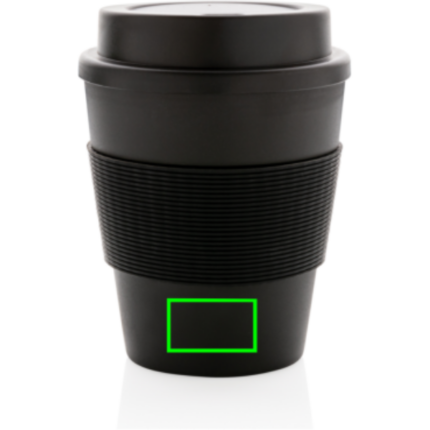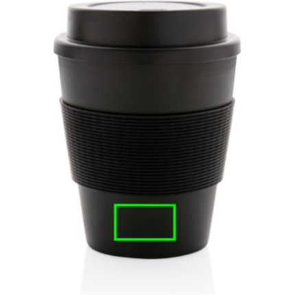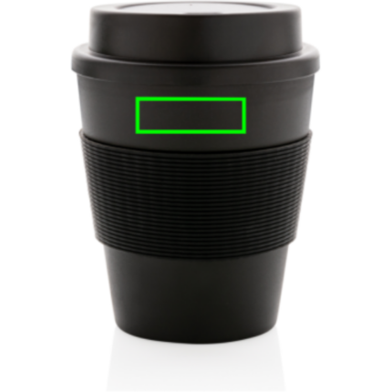 Stop single use! Bring your own cup and join the reuse revolution so you can contribute to a disposable free world. These lightweight and durable cups are perfectly suited to take your coffee on the go. These cups are reusable and made of 100% recyclable friendly PP material. The cups have a screw lid and a silicone sleeve. 100 degree Celsius food safe approved. Dishwasher and microwave safe. Content: 350ml.