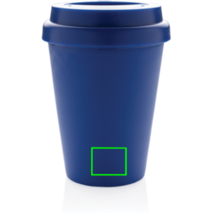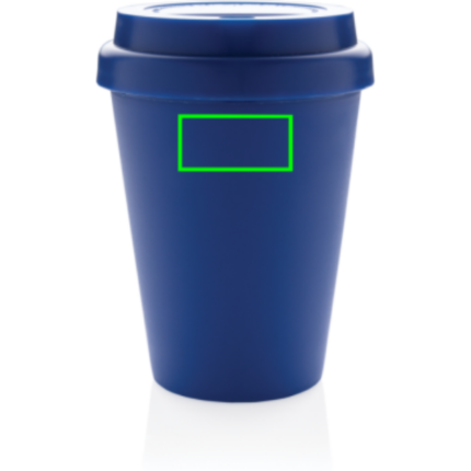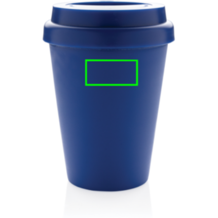 Stop single use! Bring your own cup and join the reuse revolution so you can contribute to a disposable free world. These lightweight and durable cups are perfectly suited to take your coffee on the go. The coffee cup is double wall, so it will keep your beverage warmer for longer for you to enjoy. The cups are resusable and made of 100% recyclable friendly PP material. 100 degree Celsius food safe approved. The cups have a screw lid to prevent the lid from falling off while drinking. Hand wash only. Content: 300ml.