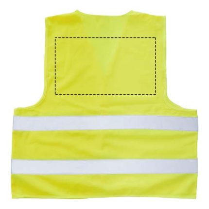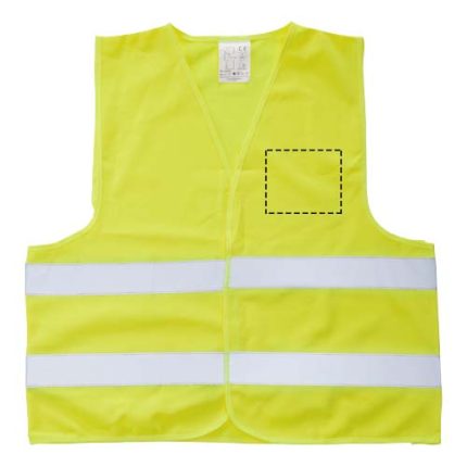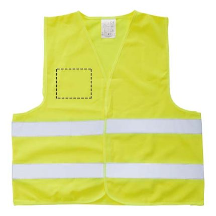 High visibility warning vest Class 2, suitable for persons between 165-180 cm. Large decoration area on the front and on the back of the vest. Visibility clothing for professional use. Fluorescent background and reflective tape. Specification EN ISO 20471:2013+A1:2016. These garments bear CE marking to demonstrate compliance with EU Regulation 2016/425/EU Personal Protective Equipment Category II.