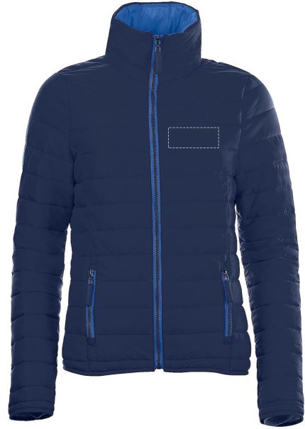 SOL’S RIDE Women’s ribbed lightweight jacket in lightly padded figure-sewn style. Contrast colour to the lining and zippers. Wind and water repellent materials. 2 zipped pockets with matching lining, high collar, banded with tone-on-tone at the hem and sleeves. Fabric details: Outer fabric 100% nylon, Lining 100% nylon, Padding: 100% polyester – 180g/m2. Only sold with print