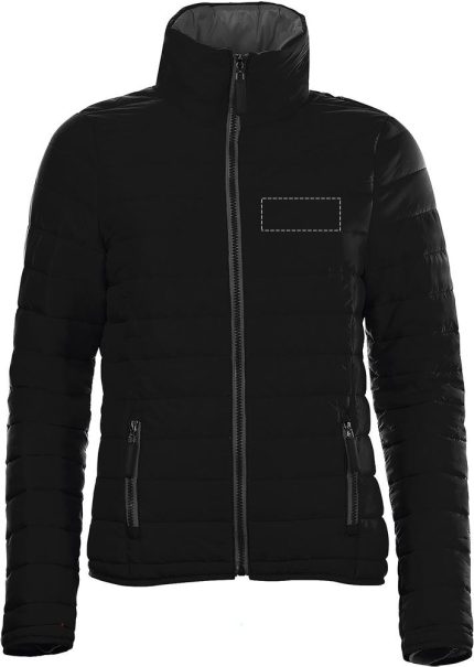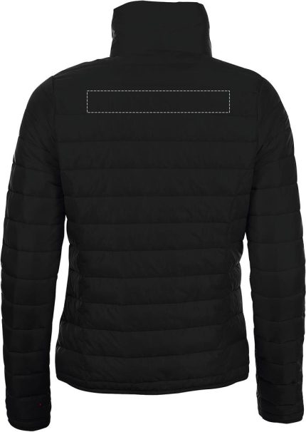 SOL’S RIDE Women’s ribbed lightweight jacket in lightly padded figure-sewn style. Contrast colour to the lining and zippers. Wind and water repellent materials. 2 zipped pockets with matching lining, high collar, banded with tone-on-tone at the hem and sleeves. Fabric details: Outer fabric 100% nylon, Lining 100% nylon, Padding: 100% polyester – 180g/m2. Only sold with print