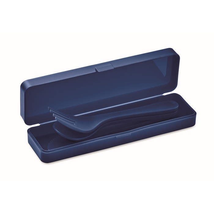 Re-usable PP portable cutlery set and case. Includes spoon, fork and knife.
