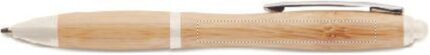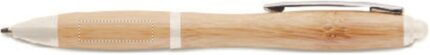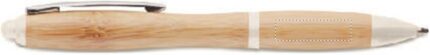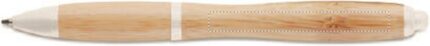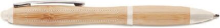 Push button ball pen with bamboo barrel and ABS fittings. Blue ink.