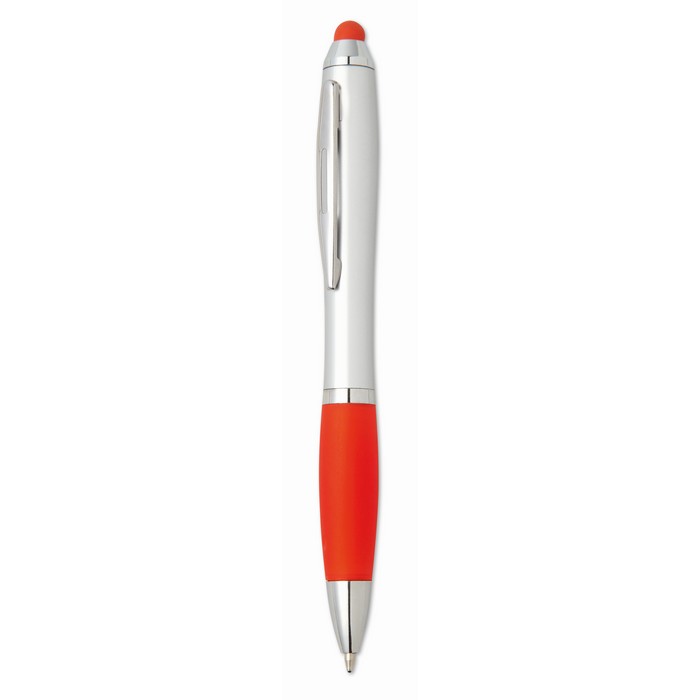 Twist action ball pen in ABS with stylus soft grip and matching tip. Blue ink