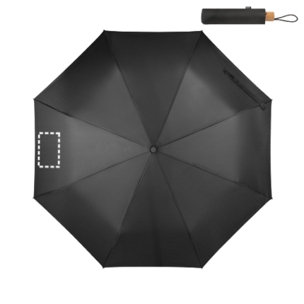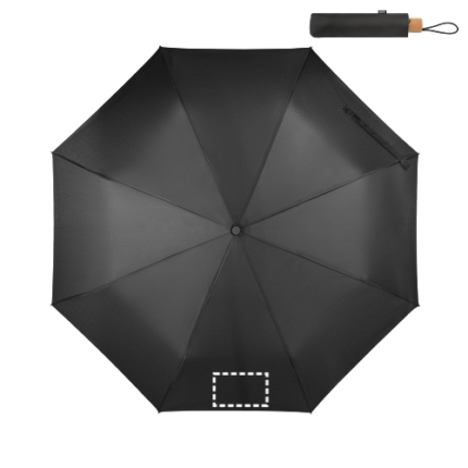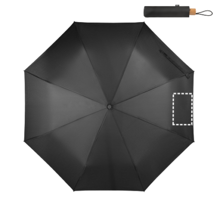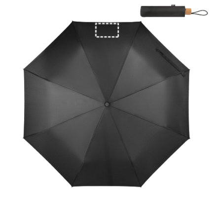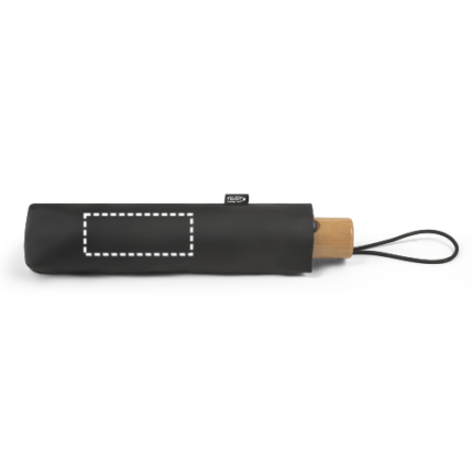 190T PET (100% rPET) pongee umbrella, with fibreglass ribs and wooden handle. Foldable umbrella in 3 sections, with automatic opening and closing and windproof. Supplied in bag. Umbrella: ø990 x 285 mm | Bag: ø55 x 240 mm