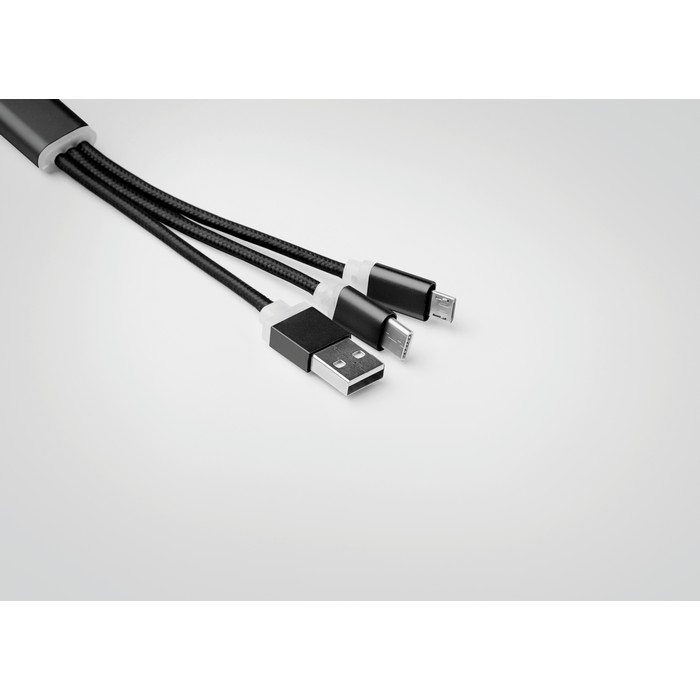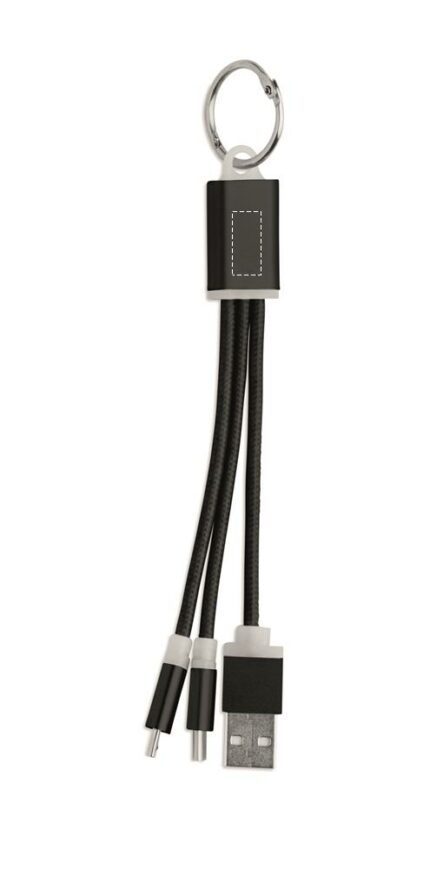 Key ring with charging cable with USB-A to Micro-B (2 in 1 pin) and Type C. Bamboo is a natural product, there may be slight variations in colour and size per item, which can affect the final decoration outcome.