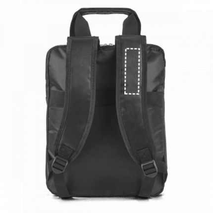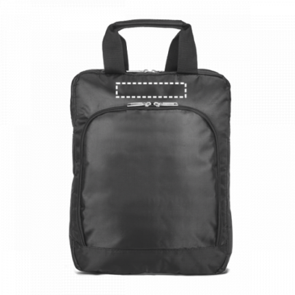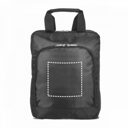 840D backpack for laptop up to 15”. Contains 1 main pocket with 3 additional pockets, and a front pocket with zipper and several compartments. Back with trolley band. Capacity up to 6 L. 300 x 370 x 60 mm