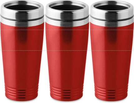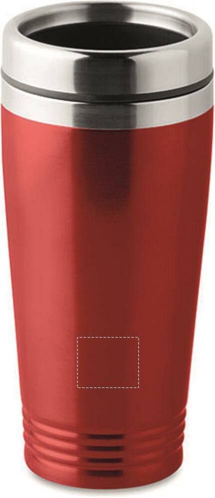Double wall stainless steel travel cup with black PP lid. Capacity: 400 ml.